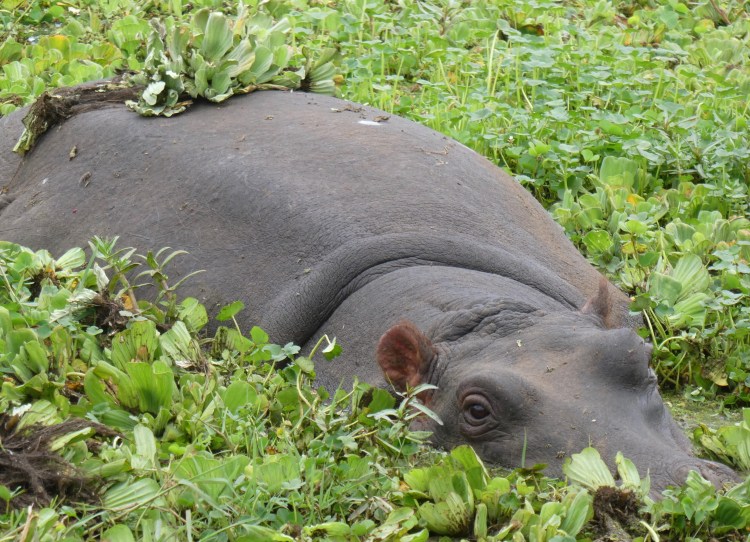 A wallowing hippo