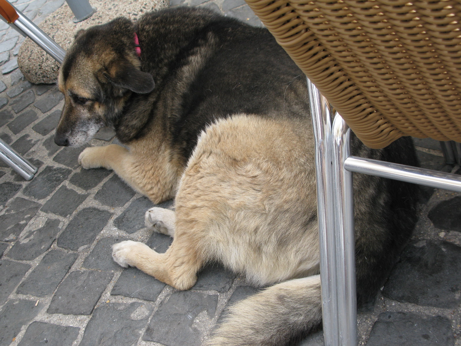 he is officially the chubbiest, friendliest alsatian I’ve ever met, something to do with his bar rounds every day and penchant for cornetti…he was lost around this time last year, like most dogs he is scared of the ferragosto fireworks, and it took a facebook campaign to find him in a nearby village and get him back, gold!