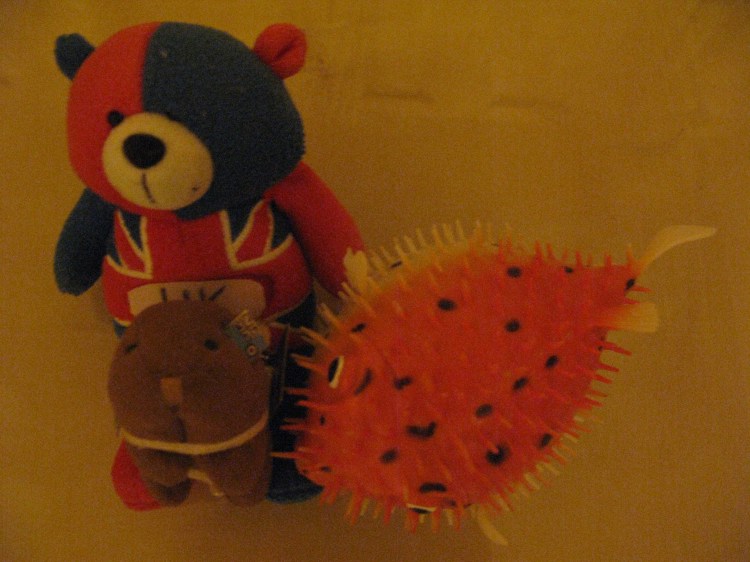 A few days near Falmouth with my friend Sam, with whom I shared many a live band and festival moment, as well as a house in Ealing in the past; Glastonbury ’97 the definitively most muddy festival of ALL time, Sam has threatened photos of us in our wellies, I say bring it on…! Sam’s deepest free diving bear was the inspiration for wombat, and they got somewhat cosy during our stay…with the best puffa ‘rubber duck’ I’ve ever seen…