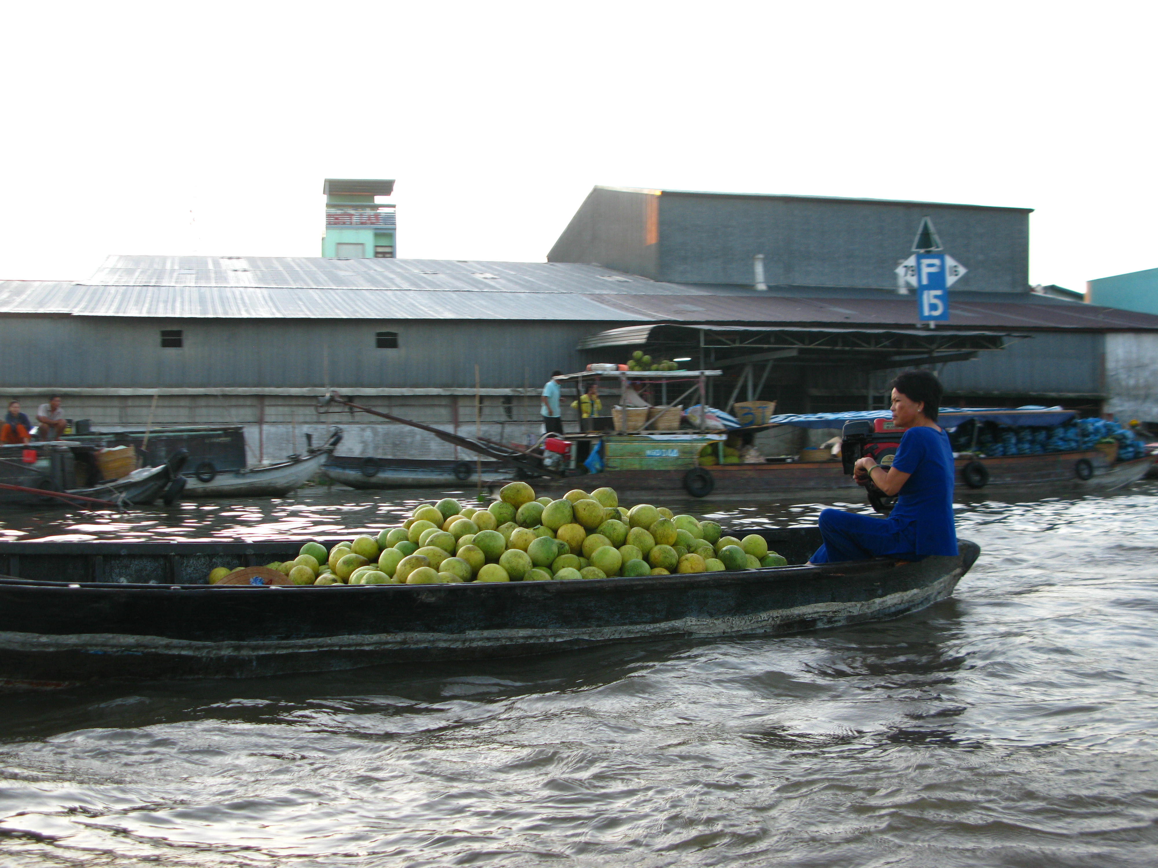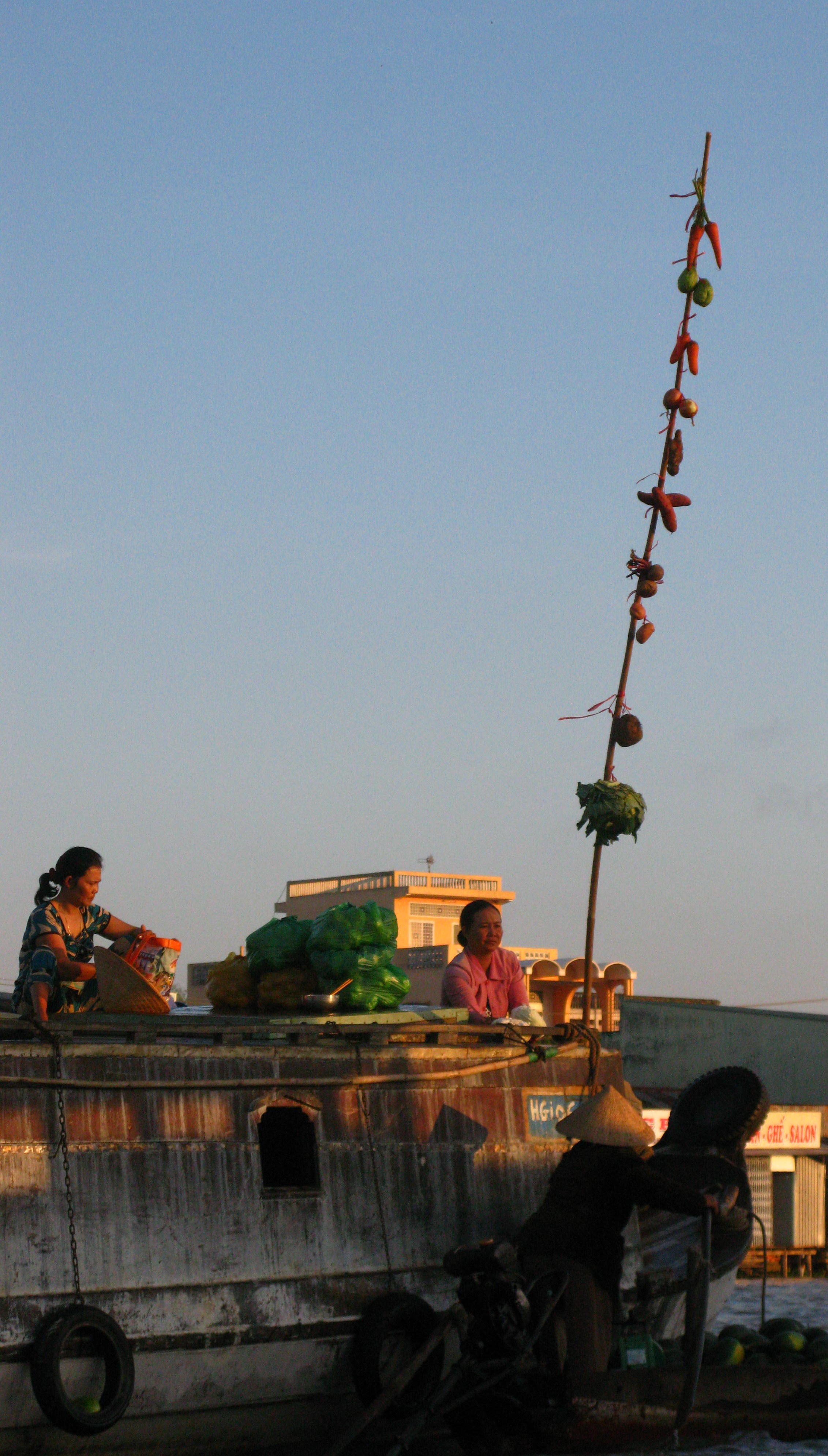 I leave you with a few shots of an early rise and morning market on the delta, where instead of a shop sign, you just hang up your wares on a bamboo pole: